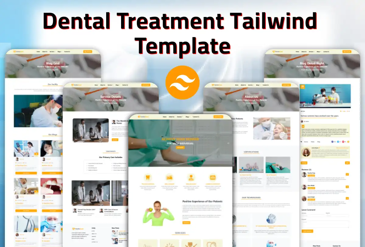 A stunning HTML CSS free template built with Tailwind CSS utility framework. Smilecare combines modern design principles with dental industry-specific features to create an engaging online presence for dental practices.