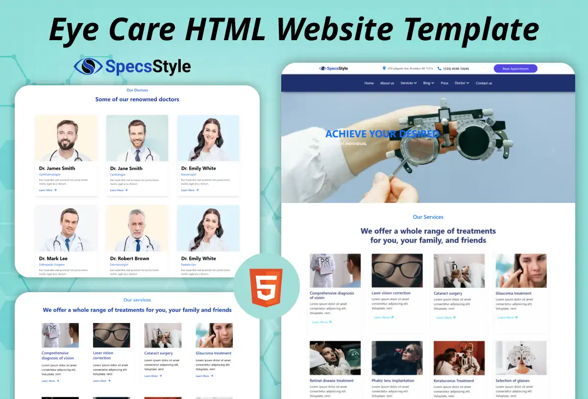 Specsstyle is a specialized free HTML template designed for optometry practices, eyewear retailers, and vision care professionals. The clean, professional layout puts your services and products in the spotlight.